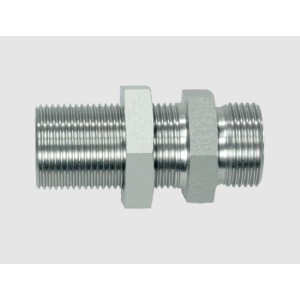 Niplu METRIC lung, cu filete exterioare egale și piuliță blocatoare, serie ușoară, cu con de 24°, pentru conexiuni hidraulice.