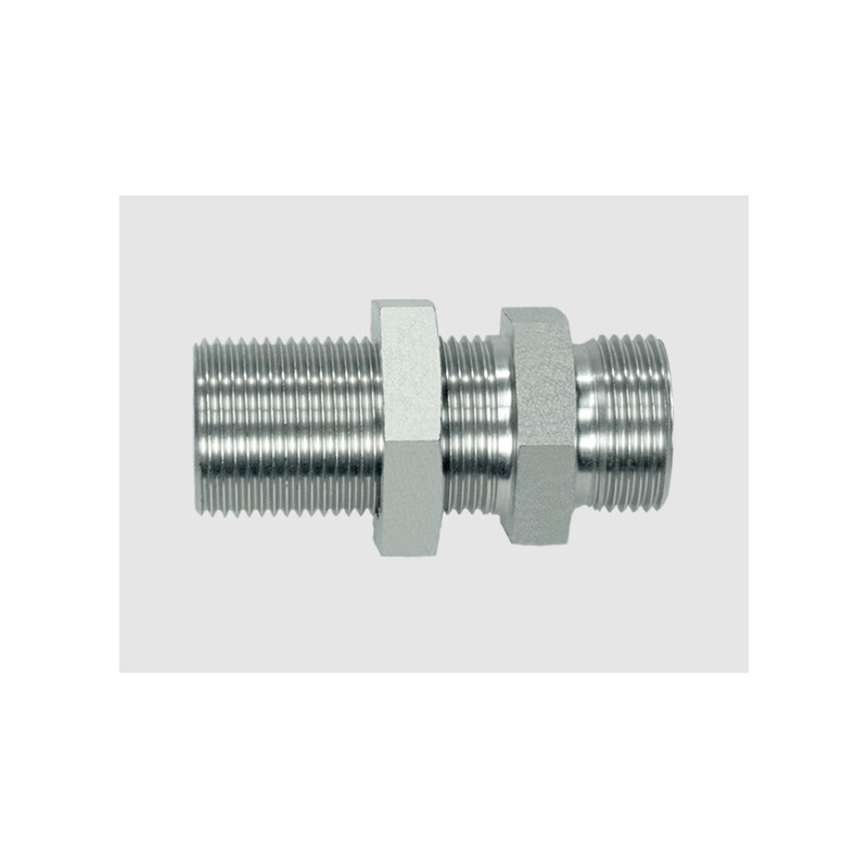 Niplu METRIC lung, cu filete exterioare egale și piuliță blocatoare, serie grea, cu con de 24°, pentru conexiuni hidraulice.