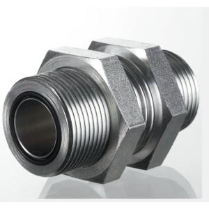 Niplu ORFS lung, cu filete exterioare egale și piuliță blocatoare, pentru conexiuni hidraulice.