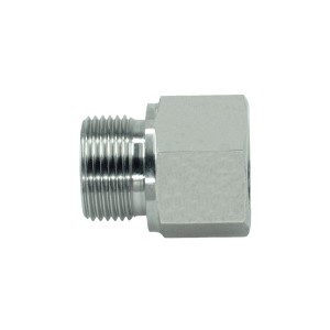 Adaptor redus BSP FE–FI tip B, realizat din oțel , cu filet BSP paralel și con de 60° pe filetul exterior. Conform DIN/ISO 228, etanșarea se realizează pe umărul de etanșare tip B, asigurând o conexiune sigură și fiabilă în aplicații hidraulice.