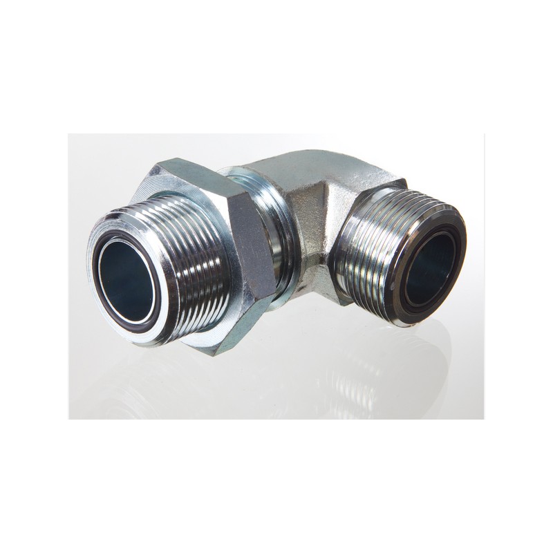 Cot lung 90° ORFS cu filete exterioare și piuliță blocatoare. Conexiune hidraulică sigură și compactă.