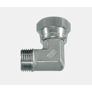 Cot 90° BSP FI–FE cu piuliță orientabilă din oțel , cu con de 60°. Construcție robustă, recomandată pentru instalații hidraulice unde sunt necesare fiabilitate și durabilitate.
