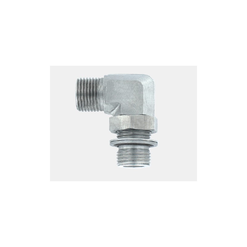 Cot 90° BSP FE–FE egal, cu piuliță orientabilă și con 60°, destinat realizării conexiunilor hidraulice.