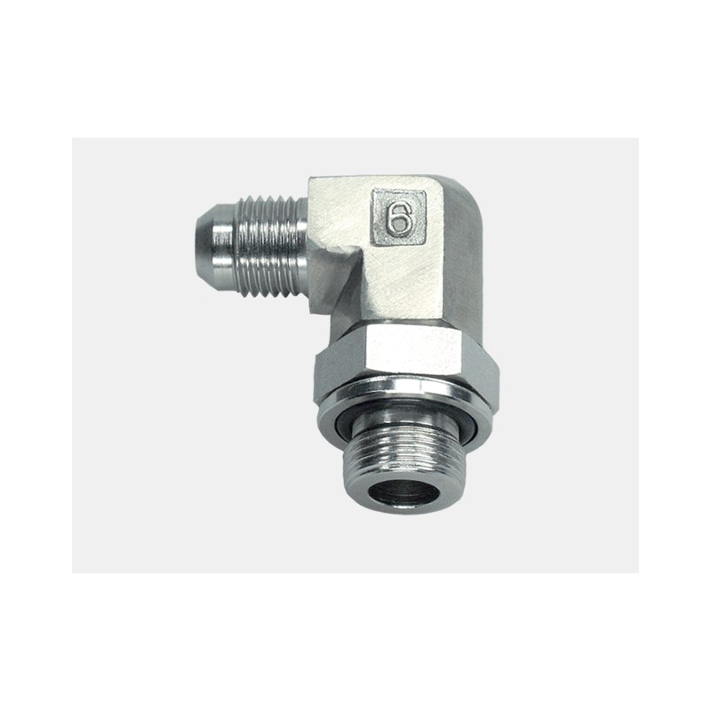 Cot 90° JIC FE–FE (UNF) din oțel , cu piuliță orientabilă și etanșare pe con de 37°, pentru conexiuni hidraulice.