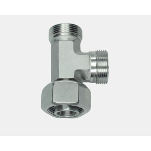 Teu METRIC egal cu filete exterioare și piuliță orientabilă laterală, serie usoară, pentru conexiuni hidraulice.