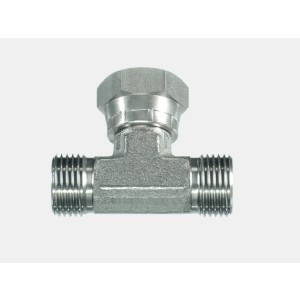 Teu JIC egal cu filete exterioare și piuliță orientabilă centrală, pentru conexiuni hidraulice.
