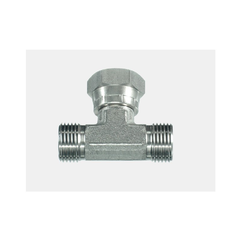 Teu JIC egal cu filete exterioare și piuliță orientabilă centrală, pentru conexiuni hidraulice.